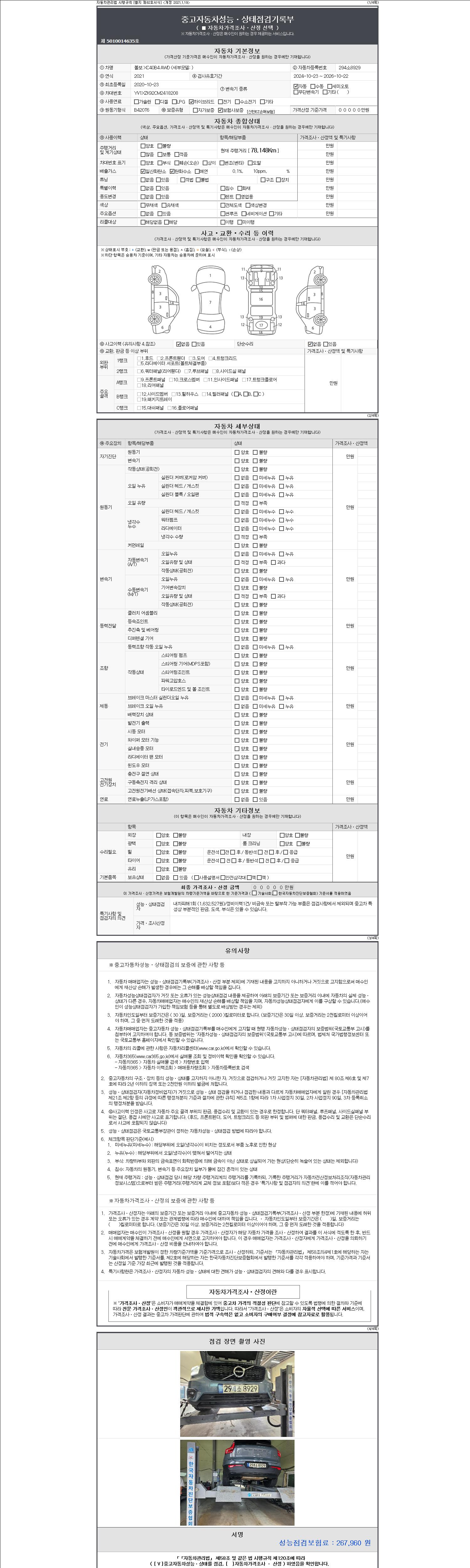 | 주행거리 | 78,148 km | 차량번호 | 294소8929 | 사고유무 | 성능기록부 참조 | 제시번호 | 제 2147483647 호 |