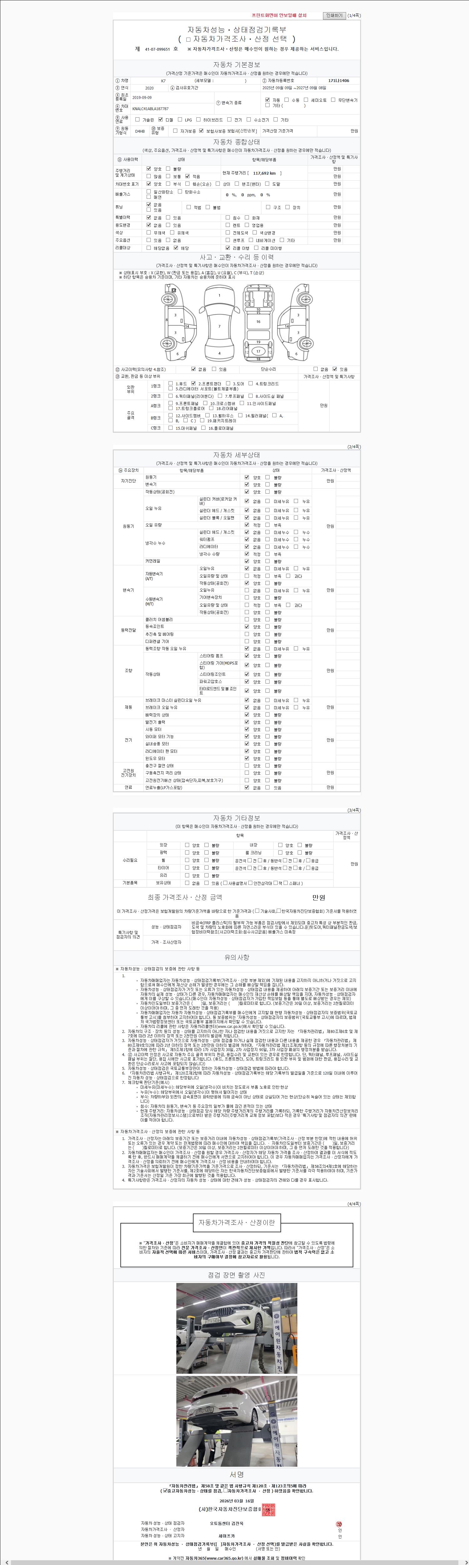 - 2. 차량 등록증이나 성능점검지 등을 상담자에게 요청및 확인하시고 사전에 미리 점검 하시기를 권유드립니다.