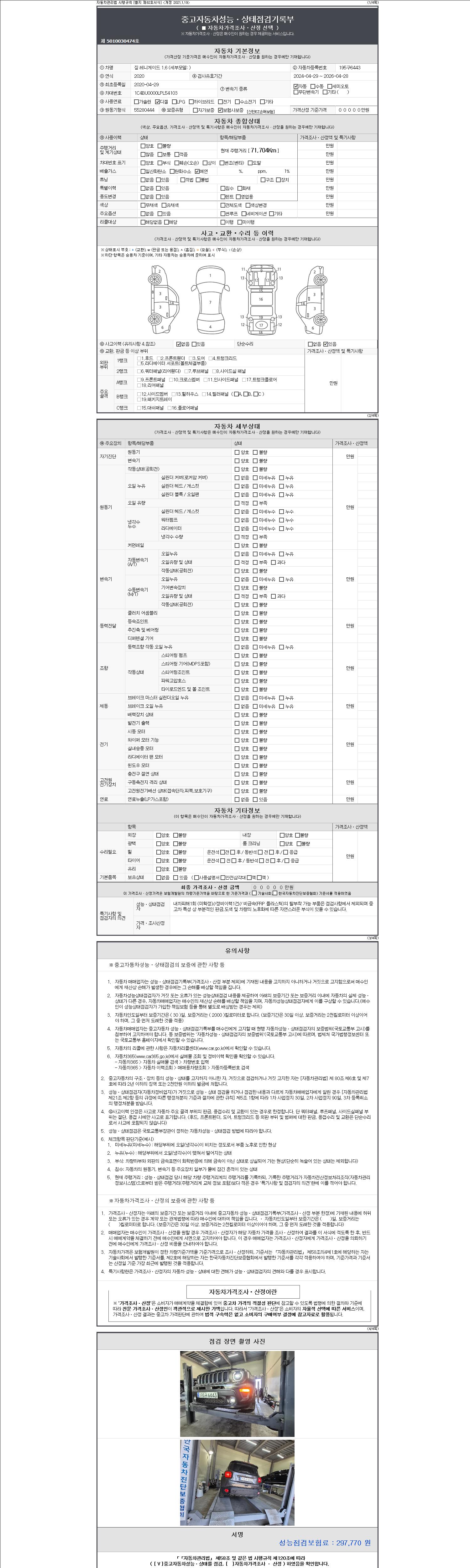 | 주행거리 | 71,704 km | 차량번호 | 195구6443 | 사고유무 | 성능기록부 참조 | 제시번호 | 제 2147483647 호 |