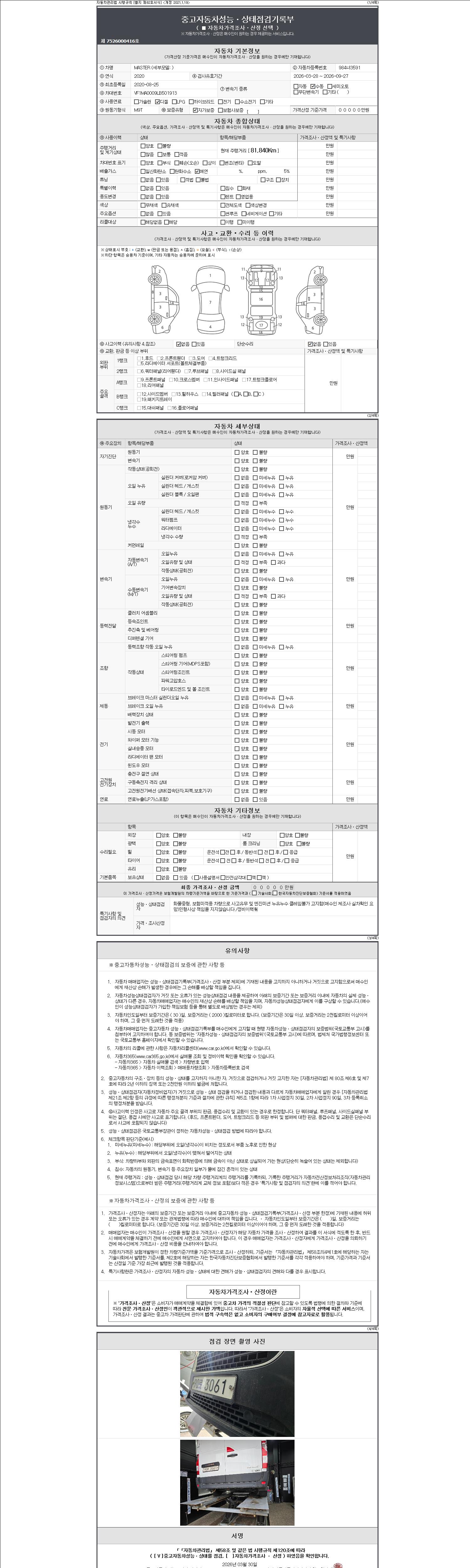 - 2. 차량 등록증이나 성능점검지 등을 상담자에게 요청및 확인하시고 사전에 미리 점검 하시기를 권유드립니다.