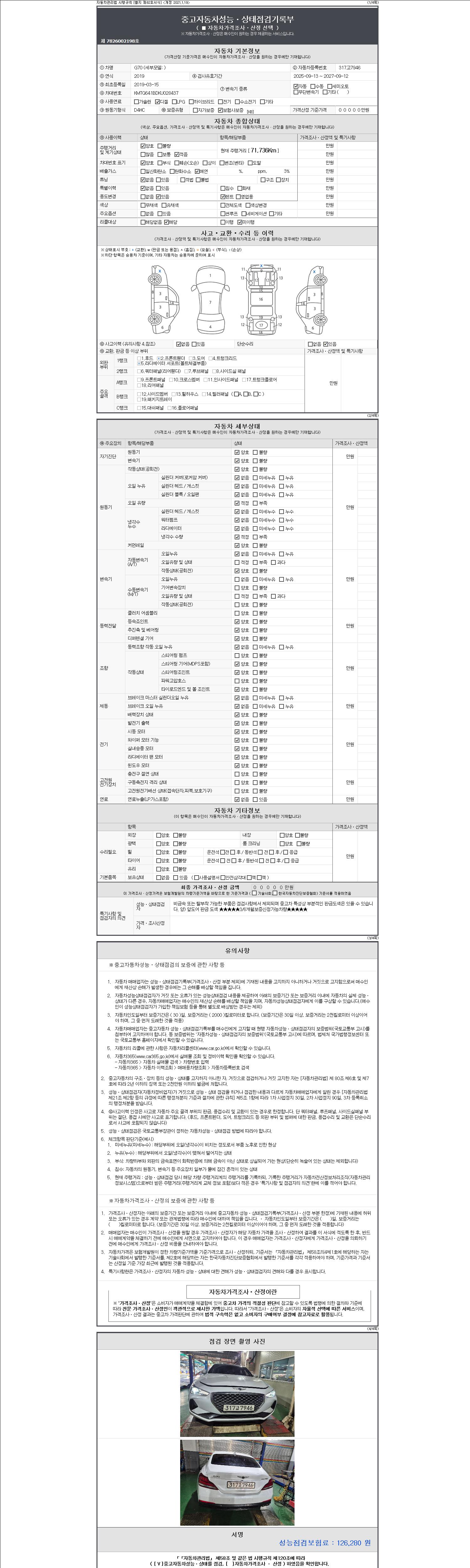 | 주행거리 | 71,736 km | 차량번호 | 317고7946 | 사고유무 | 성능기록부 참조 | 제시번호 | 제 2147483647 호 |