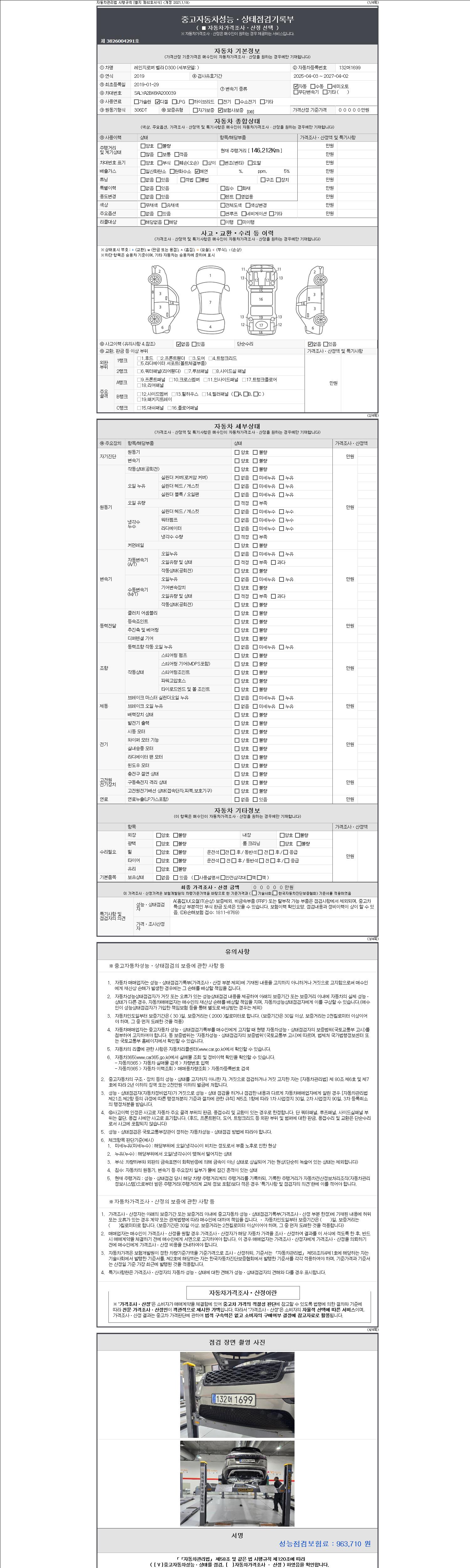 - 사고유무 : 성능기록부 참조
