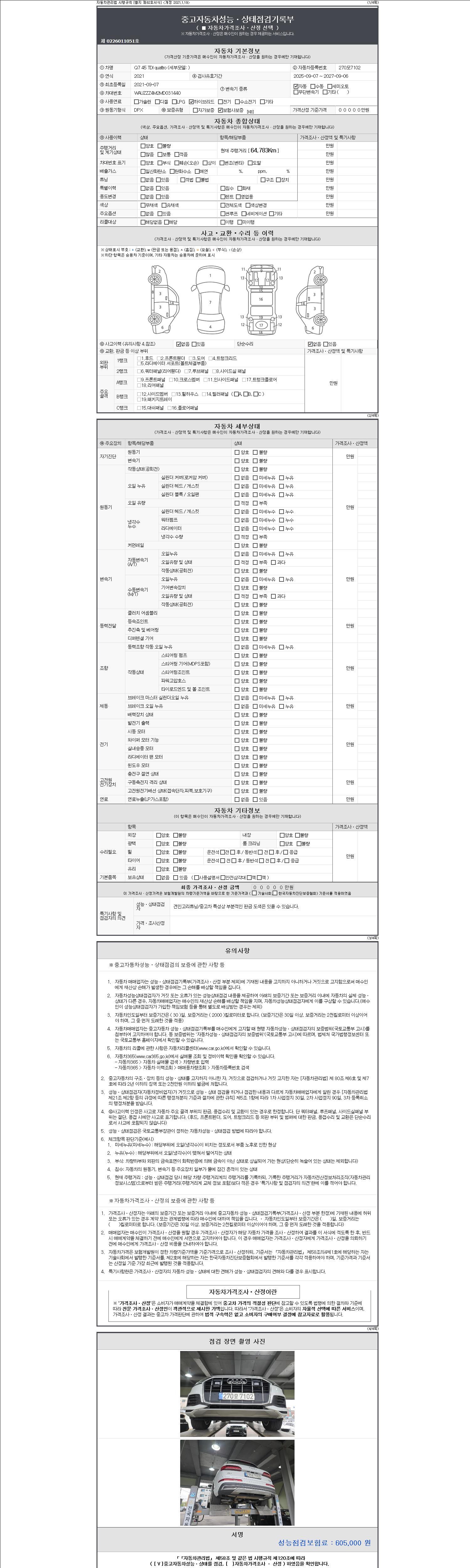- 2. 차량 등록증이나 성능점검지 등을 상담자에게 요청및 확인하시고 사전에 미리 점검 하시기를 권유드립니다.