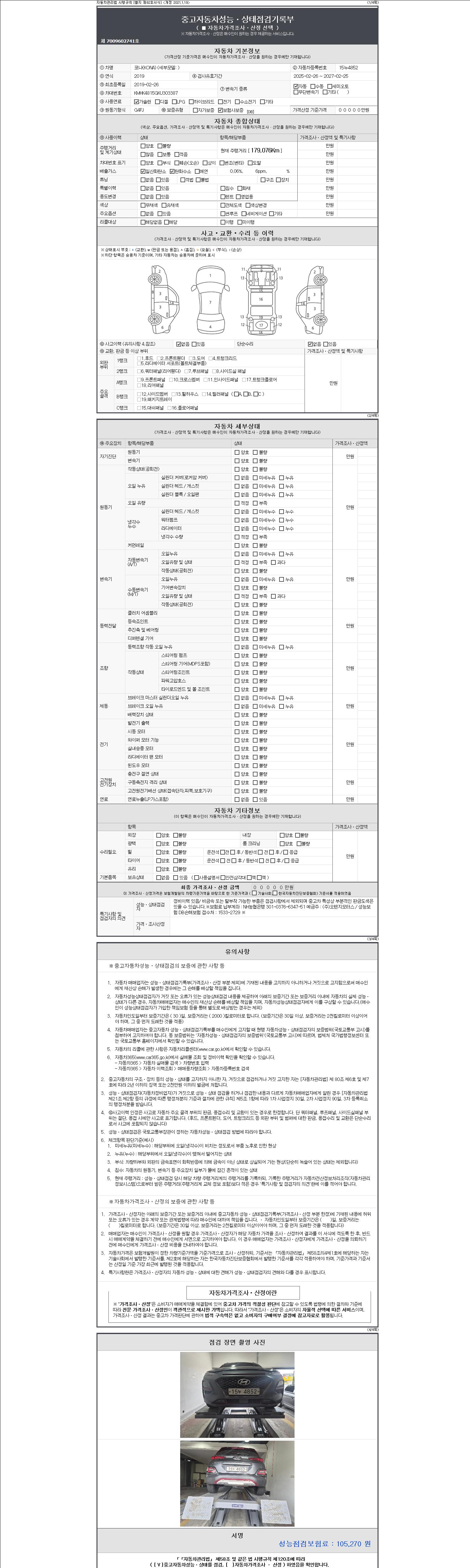 - 2. 차량 등록증이나 성능점검지 등을 상담자에게 요청및 확인하시고 사전에 미리 점검 하시기를 권유드립니다.